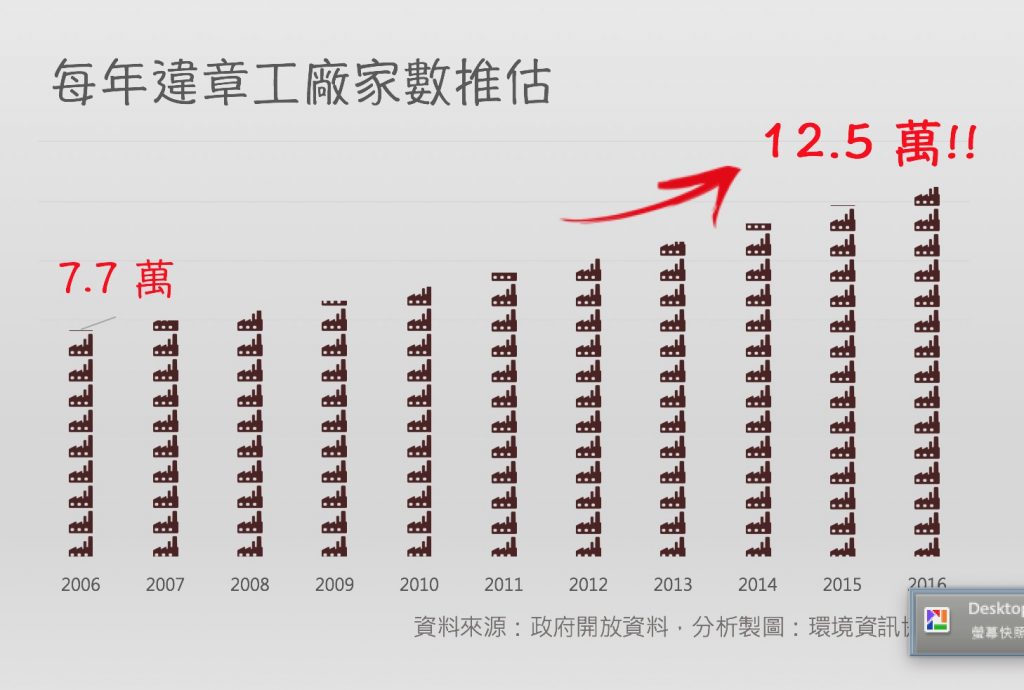 全國農地在1975年編訂「特定農業區」和「一般農業區」,開始實施土地使用管制,維護農地農用。但依農委會這一兩年的盤點,工廠違規占用平地農地面積達1.3萬公頃,且依稅籍資料估算,違章工廠家數每年仍以1,500至3,000家持續成長。如果不能有效遏止新增違章工廠的擴張,臺灣要如何維持良好的農業發展環境,如何確保合法中小企業廠商的權益,在有法可管的情形下,無論中央或地方政府,都應拿出執政魄力遏止農地違章工廠的擴散,接著我們才能好好談合理的國土空間利用,依據不同產業需求,提出實質的工廠輔導政策內容。政府部門裡,還有許多懷抱理想,思考著如何帶領臺灣產業走出去的務實公務員們,別讓選舉時候選人的政治支票,賠上國人糧食健康、毀了農業發展環境,更擊垮這些堅持在崗位上努力做事的政府良心啊!