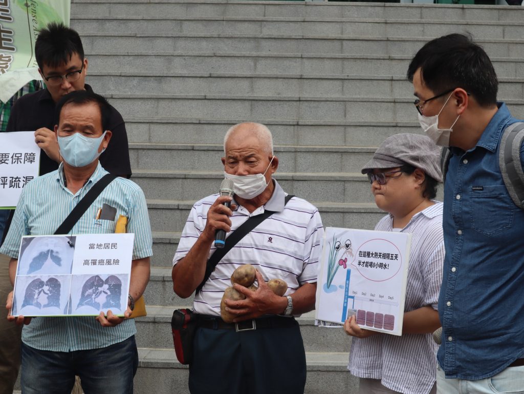 廖明田進一步表示,既有污染源已經超過環境負荷,中科導致的健康風險也尚未釐清,現在又要進駐新的廠商,做新的健康風險評估,表示先前的健康風險評估根本不夠。后里區公館里馮詠淮里長以自身罹癌的經驗說明,他30年來不曾抽菸,卻在2018年中秋節前例行健康檢查赫然發現自己已經是肺腺癌。他自己當里長參與里民的婚喪大小事很清楚,后里死亡率當中有65%是癌症死亡,在這當中有35%是因為肺腺癌喪失生命。中科對於新增加廠商的製程跟化學物質至今都尚未掌握,居民對於既有污染源的健康風險始終抱持懷疑。