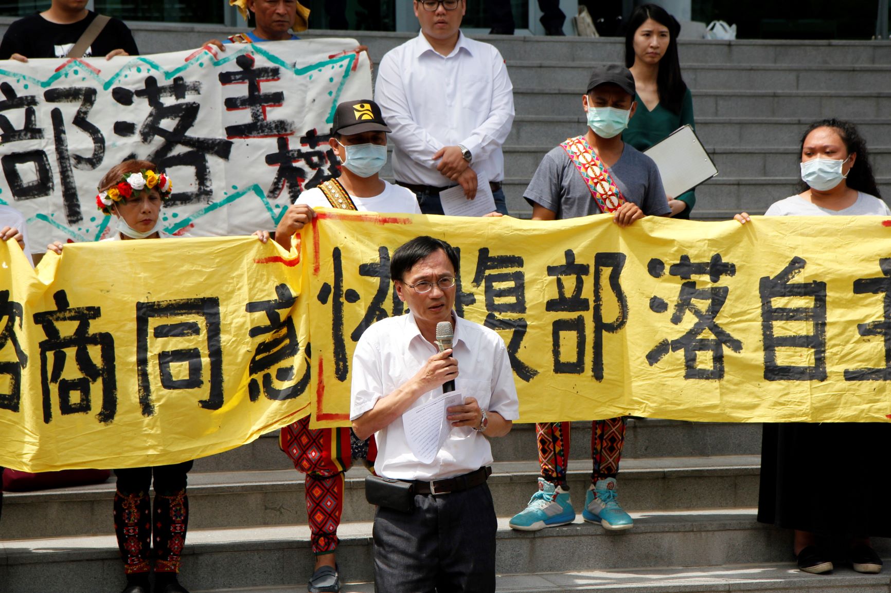 家族領袖林茂盛拉罕(兼任部落會議主席)帶領族人與聲援團體齊呼「釐清爭議,暫停開發」、「廢除諮商同意,恢復部落自主」、「尊重部落主權」。.jpg)