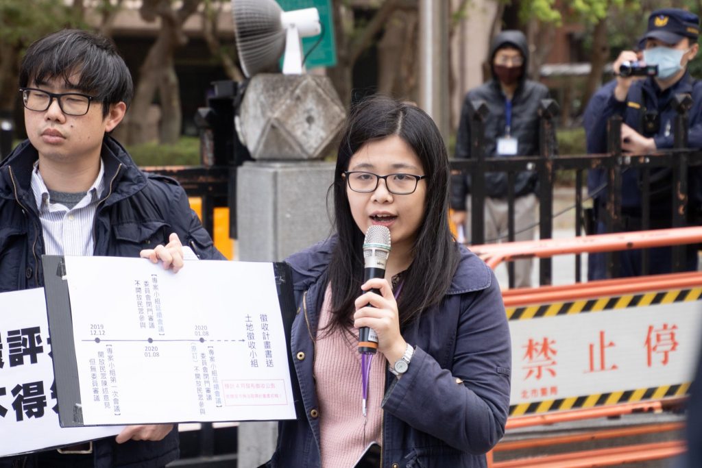 環境法律人協會專員徐孟平表示土地徵收審議影響利害相關人權利及公共利益甚鉅,應該要有更高程度的資訊公開及民眾參與(台權會何宇軒拍攝)