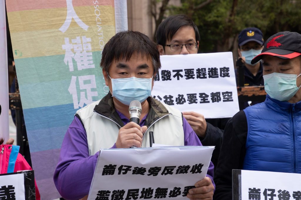 「崙仔後旁」居民代表呂學信質疑政府是可以因為別人的私利,這樣強徵人民的家園嗎?(台權會何宇軒拍攝)