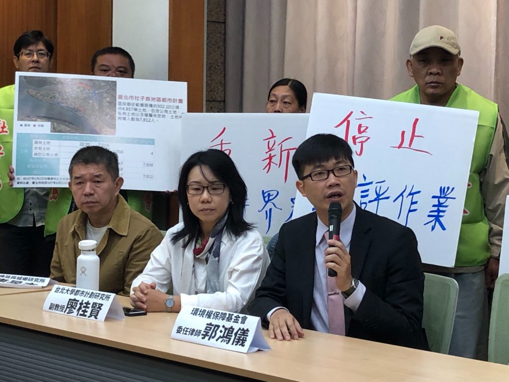 環境權保障基金會委任律師郭鴻儀表示,社子島地區開發牽涉大臺北地區防洪計畫以及臺北市士林社子島地區都市計畫,防洪計畫及都市計畫內容將影響社子島地區未來開發的公共工程內容包括堤防、整地、大地、道路、排水、污水下水道、自來水、共同管道、公園綠地以及專案住宅等,這些工程項目都是環評審查的對象。但目前無論是防洪計畫或都市計畫都仍在審查中,這些上位計畫還未底定之前,環評審查對象也無法具體特定,呼籲臺北市政府,不要呷緊弄破碗,應等到防洪計畫及都市計畫都確定、開發行為也確定後再進行環評。目前社子島許多居民無論是對防洪或都市計畫內容都有許多爭議和不滿,市府應積極強化溝通以及解決民眾對於都市計畫內容的疑慮,而不是一再強硬蠻幹強走程序。