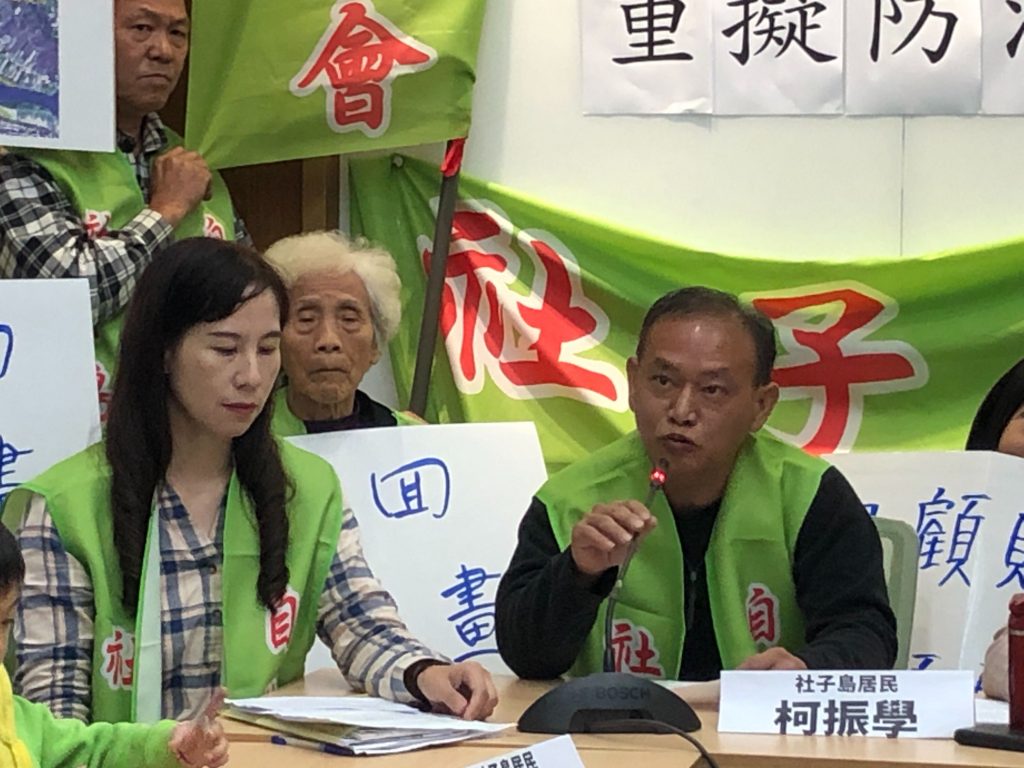 社子島居民柯振學指出,107年6月26日內政部通過社子島主計畫案,有附帶決議三個條件:包括聚落人文紋理要維持、安置計畫要合理安置理聽證會;若北市辦聽證會不夠徹底,內政部將可在辦聽證會。眼看社子島採全區區段徵收,將全區剷平,九大聚落將夷為平地,聚落無法保存;夜弄土地公、划龍舟、各大聚落間的信仰文化部將消失。而安置計畫的基礎——家戶訪查——不確實,社子島內4258戶,只調查2047戶,只佔百分之48.1。上半年短短的兩個月內就完成聽證程序;原本預計今年六月開預備聽證會,十月開正式聽證會,但台北市府卻急就章就完成聽證。因此,我們要求退回主計畫,反對區段徵收、停止環評!