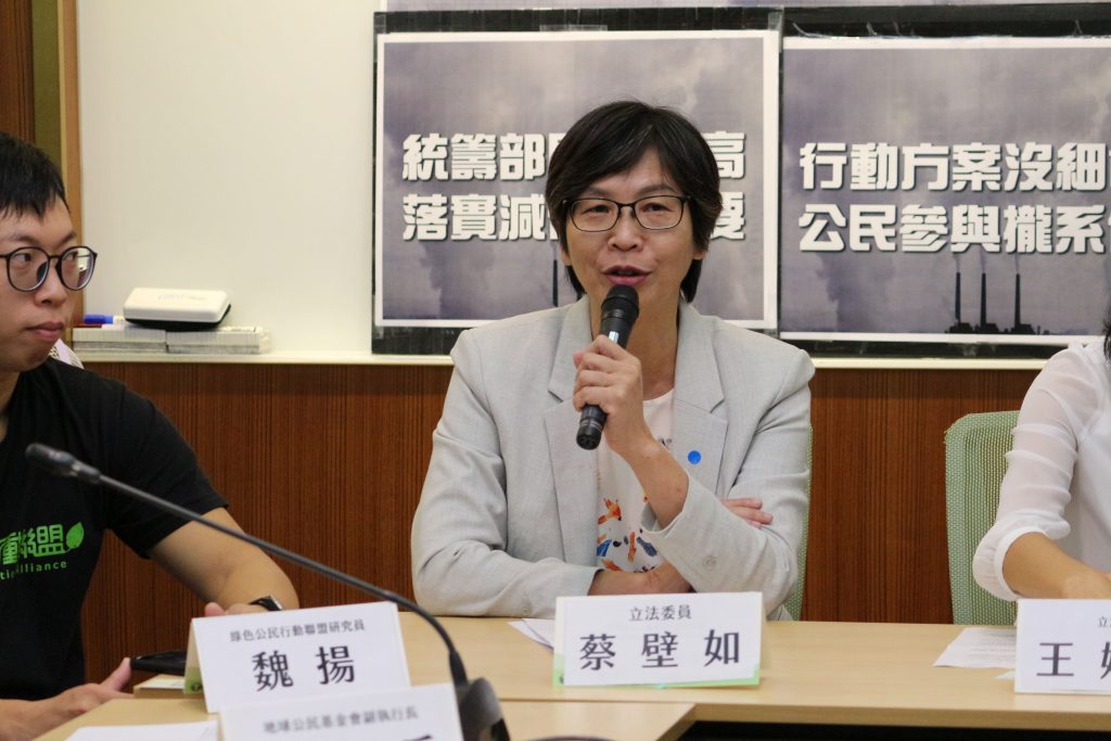 蔡壁如強調,現在氣候變遷非常緊急,地球正面臨第六次物種大滅絕。如果是彗星撞地球,我們無能為力,氣候變遷是人類造成的,我們可以改變這次滅絕的命運,台灣應該和國際社會共同承擔,2050年淨零碳排,一定要寫入《溫室氣體減量管理法》。