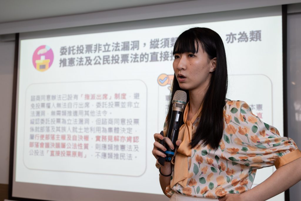 環權會律師黃馨雯表示,此次部落會議有四大問題。第一,誰有權投票。諮商辦法讓居住在部落範圍內,所有的原住民都能投票,嚴重侵害卡大地布族人對傳統領域的決策;第二,家戶代表制。《諮商同意辦法》要求每戶一票,且只有戶長有投票權,跟部落傳統決策機制有違,部落傳統是拉罕帶領討論並形成共識,若有衝突,也是拉罕做出決策。