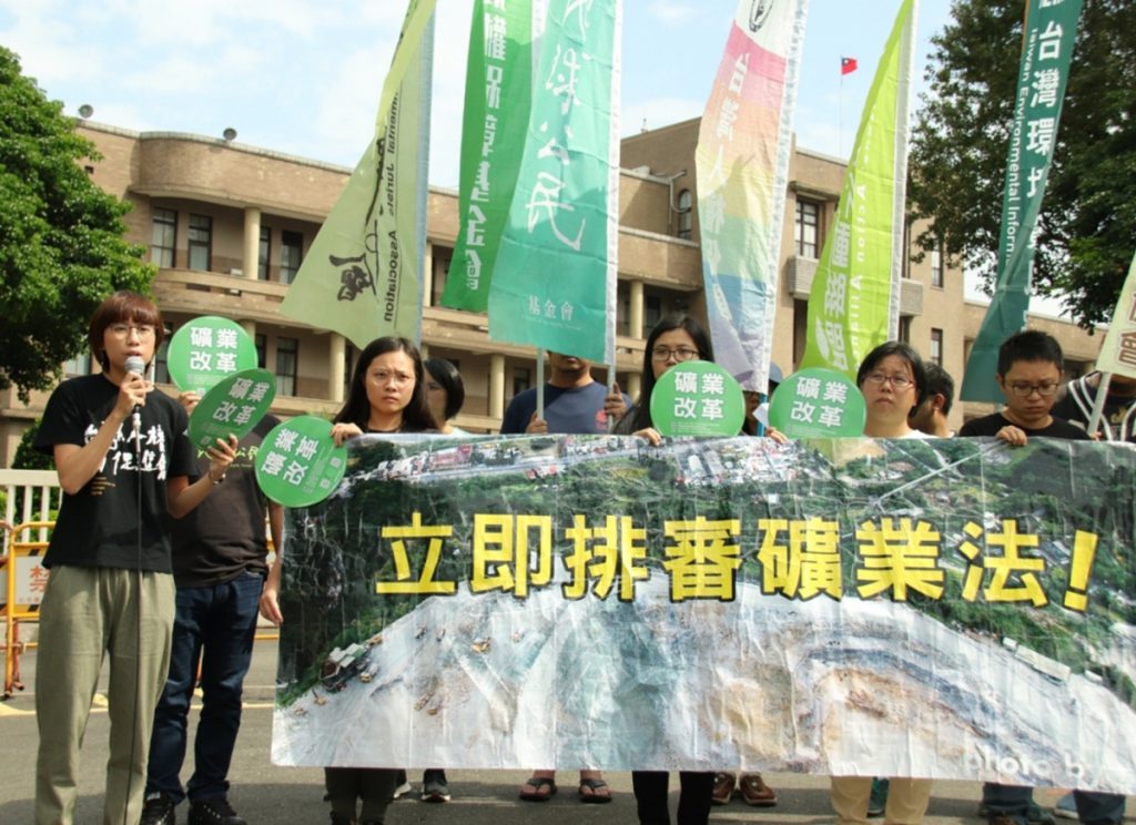 (地球公民基金會花東山林組主任黃靖庭代表民間團體要求行政院年底前完成礦業修法,一周內給明確答案。蔡馥宇攝)
