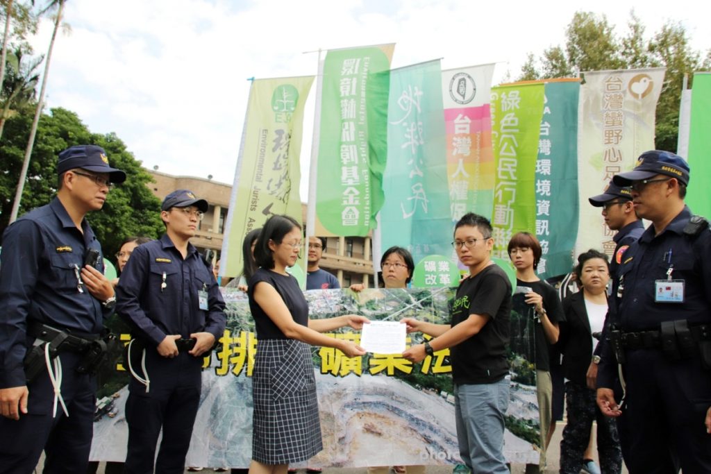 記者會最後由地球公民基金會主任黃靖庭代表民間團體,遞交三個提問給行政院代表經濟能源農業處參議呂貞慧,要求行政院院長蘇貞昌一周內給出明確答案。