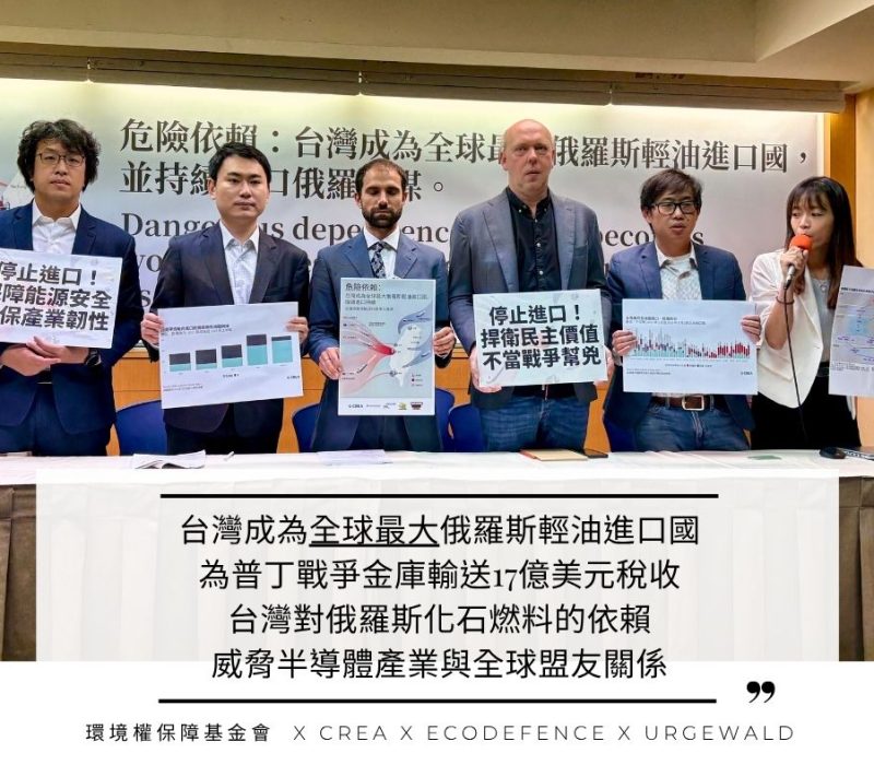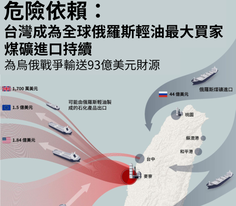 【新聞稿】台灣成為全球最大俄羅斯輕油進口國,為普丁戰爭金庫輸送 17 億美元稅收