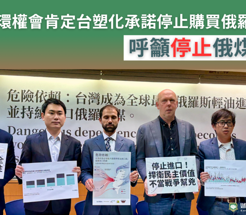 《危險依賴:台灣成為全球最大俄羅斯輕油買家,煤礦進口持續》研究報告發布