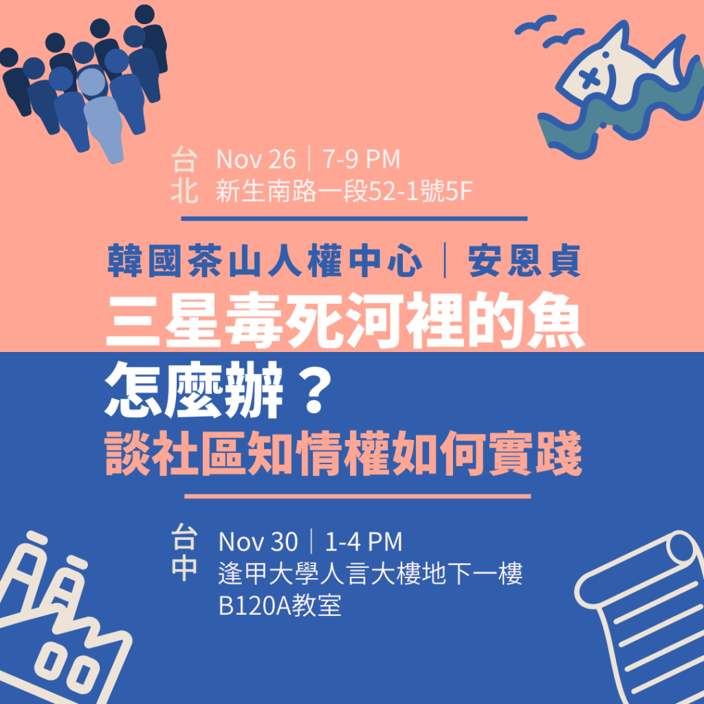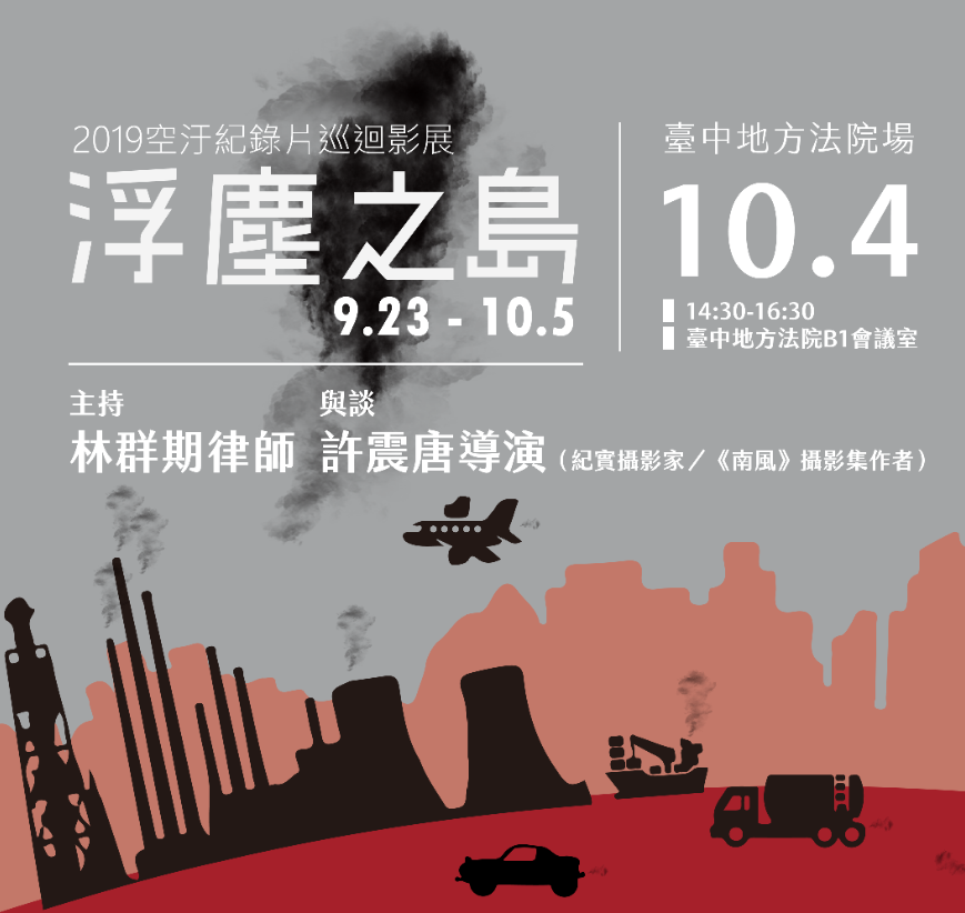 時間:2019年10月4日(五) 14:30-16:30 地點:臺中地方法院B1會議室 與談:許震唐導演(紀實攝影家/《南風》攝影集作者) 主持:林群期律師 放