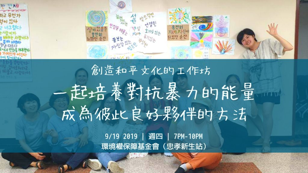 「創造和平的文化」工作坊( Creating Culture of Peace Workshop) 全球網絡已經遍及印尼、菲律賓、尼泊爾、紐西蘭、韓國等地。 用互助諮商(Co-counseling)的方式,學習更理解自身及傾聽面對不同的聲音跟諮商。在韓國,此工作坊也已經推廣至公務員、社工、青少年、兒童、光州518抗爭倖存者等各式各樣的團體。