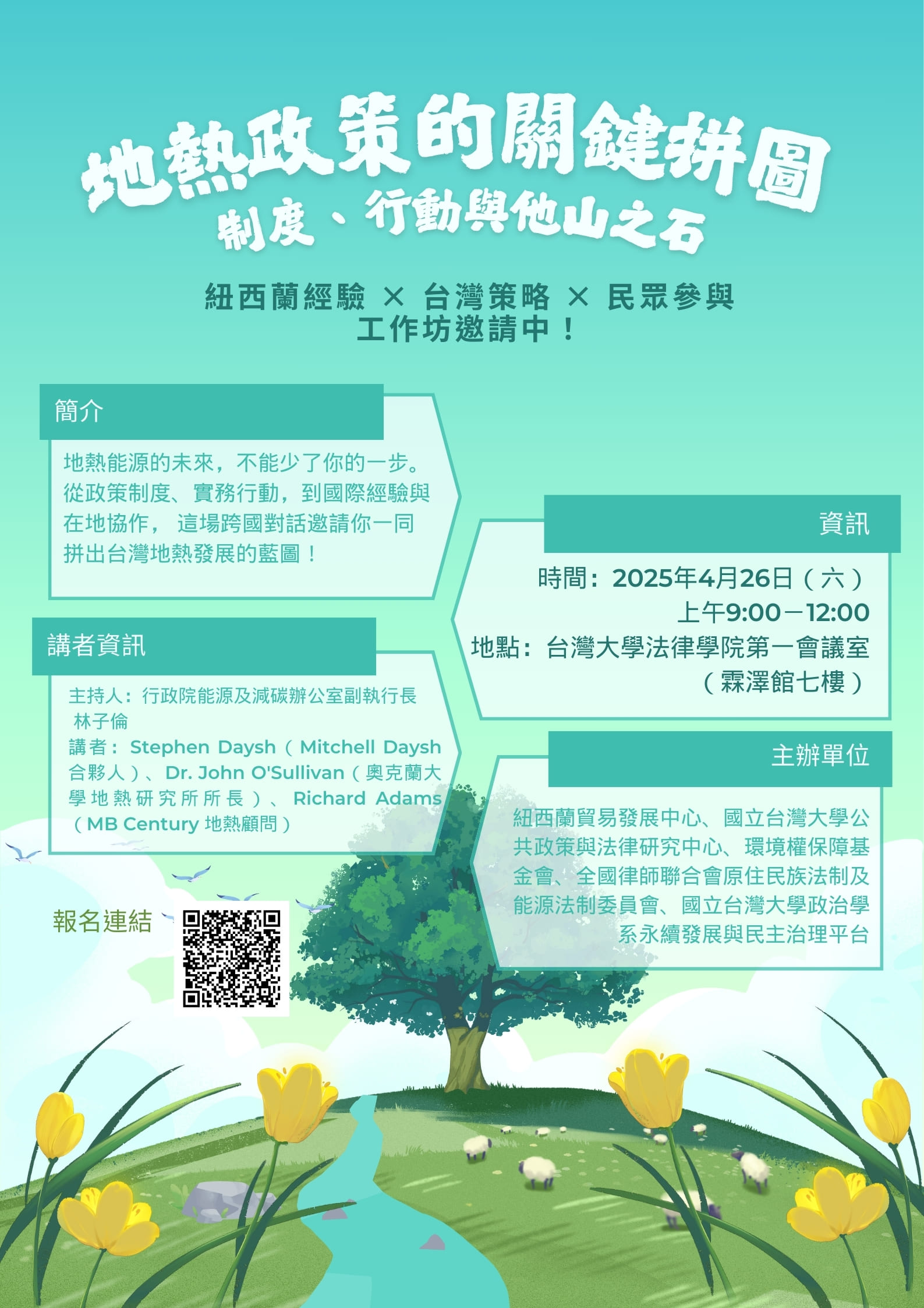 地熱政策的關鍵拼圖 制度、行動與他山之石紐西蘭經驗 × 台灣策略 × 民眾參與 工作坊