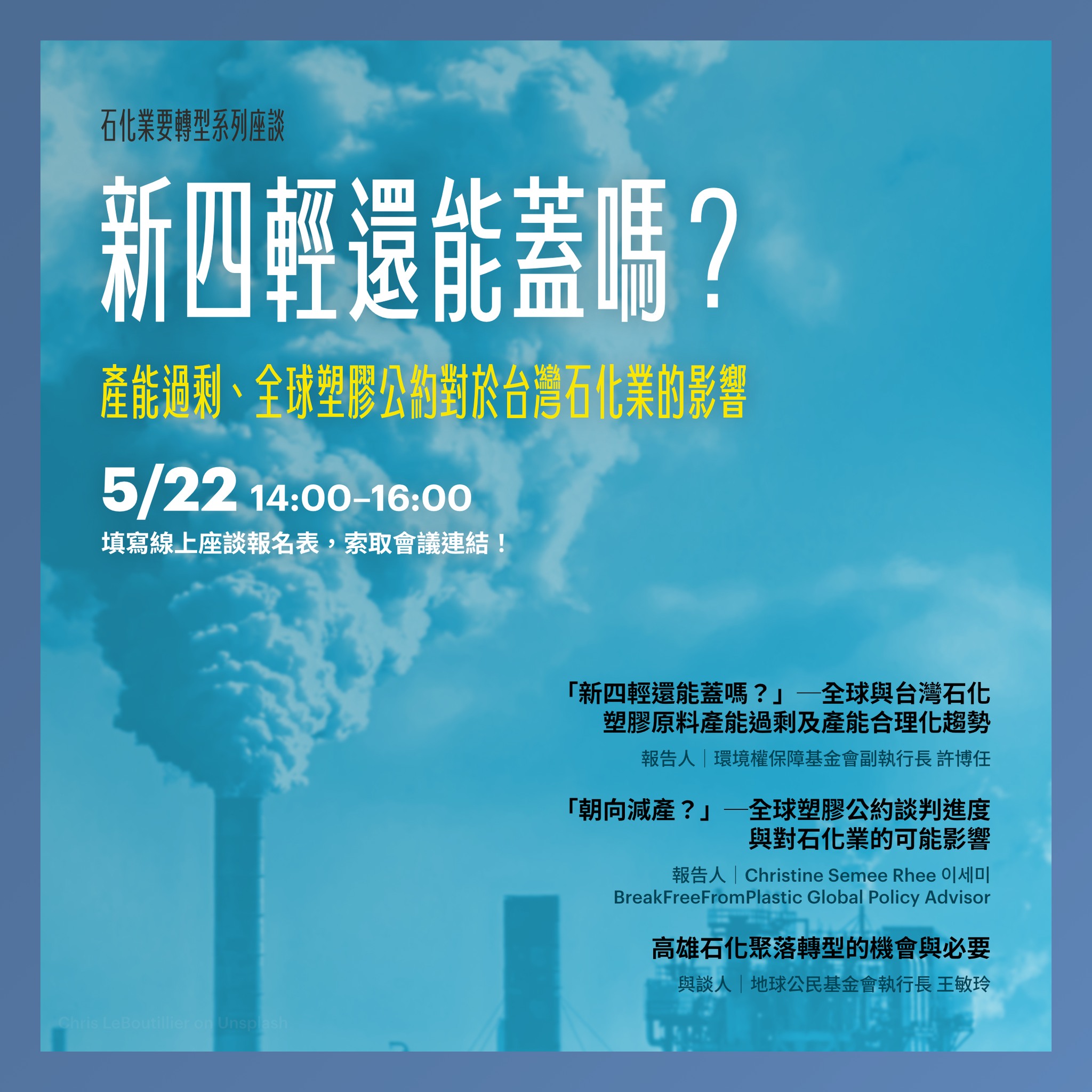 【線上座談】「新四輕還能蓋嗎?」─產能過剩、全球塑膠公約對於台灣石化業的影響