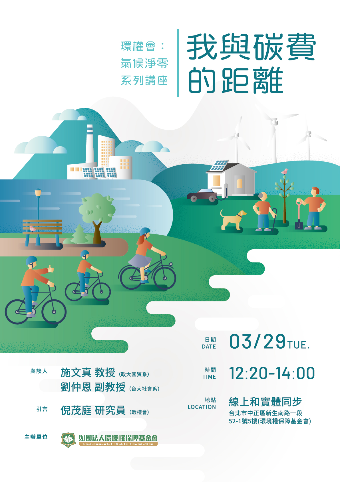 花一個中午的時間,和我們一同討論未來氣候法修法中「碳費」的施行,分別對於產業、人民的意義與影響,以及目前環保署修法草案中是否有待強化的規範。