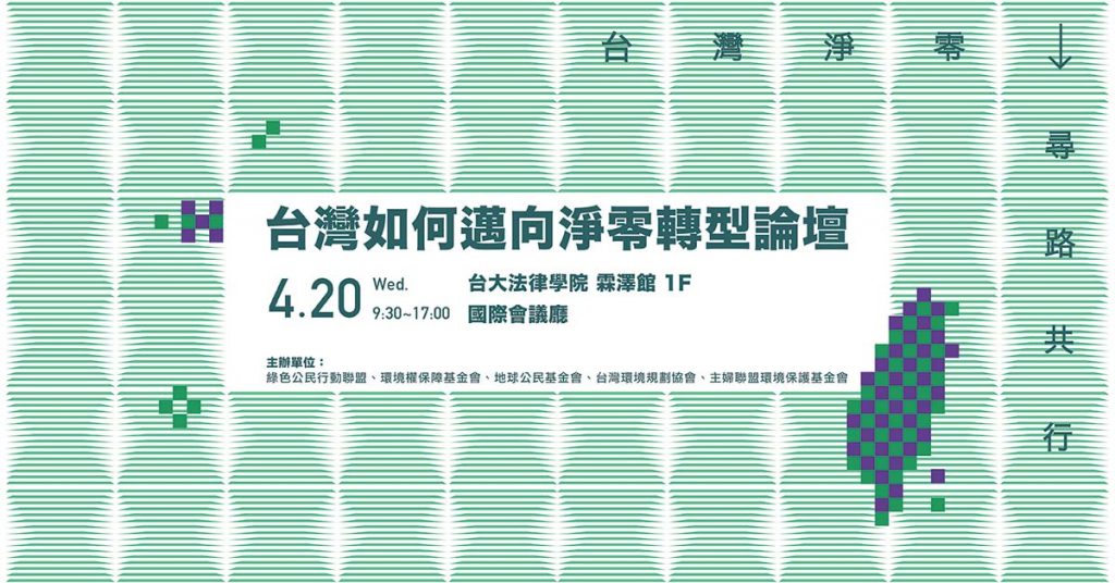 ➤ 主辦單位:綠色公民行動聯盟、環境權保障基金會、地球公民基金會、台灣環境規劃協會、主婦聯盟環境保護基金會