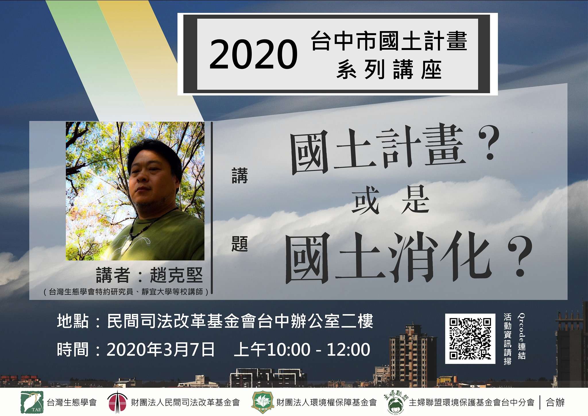 合辦:台灣生態學會、民間司法改革基金會、環境權保障基金會、主婦聯盟環境保護基金會台中分會