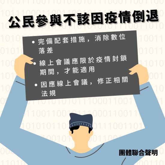 我國COVID-19通報確診人數近幾個月來逐漸上升,全臺已進入三級警戒,不必要之活動或集會應停止。部分政府機關為避免開發案之進度延宕,陸續將環境影