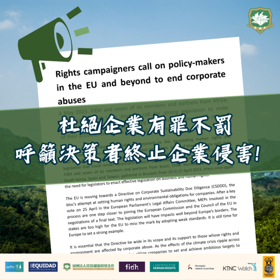 【聯合聲明】杜絕企業有罪不罰,呼籲決策者終止企業侵害!