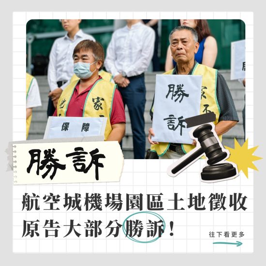 【聯合新聞稿】航空城機場園區土地徵收 原告大部分勝訴!