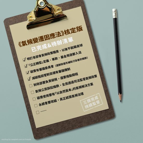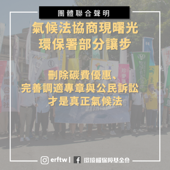2020年開始,關心氣候緊急的公民團體(環境權保障基金會、綠色公民行動聯盟、地球公民基金會、台灣環境規劃協會、台灣青年氣候聯盟、環境正義基金會)開啟修正《溫室氣