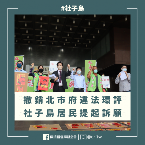 今年1月台北市環評委員會不顧環評仍有明顯重大瑕疵,強行通過社子島開發計畫環境影響評估。社子島自救會不服,號召百位社子島居民聯名提起訴願。社子島自救會今日至台