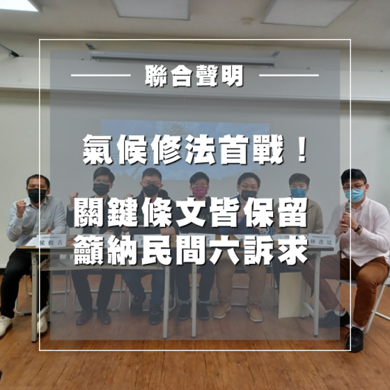 歷經兩天(5月11至12日)密集審查,總計有20部以上修法版本,並攸關台灣可否達成淨零排放的「氣候變遷因應法」(溫管法、氣候法修法),已完成初審。但此舉並未